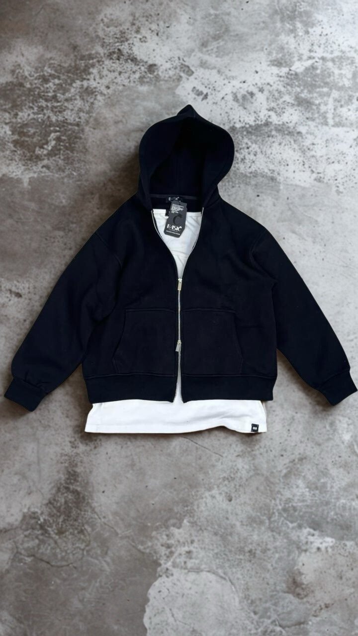 * Double the Zips, Triple the Comfort. Shown in Navy, this versatile hoodie is also available in Grey, Black, and Emerald Green.
